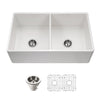 Houzer Platus 32 inch White Fireclay Apron Front Farmhouse 50/50 Double Bowl Kitchen Sink with Low Divider
