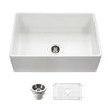 Houzer Platus 33 inch White Fireclay Apron Front Farmhouse 50/50 Double Bowl Kitchen Sink with Strainer & Grids