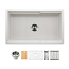 Houzer Platus White Fireclay Undermount Single Bowl Kitchen Sink with Basket Strainer and Basin Grid Included