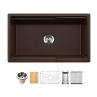 Houzer Quartztone 33" Apron Front Farmhouse Granite Composite Workstation Kitchen Sink with Accessories