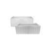 33” x 18” x 10” Reversible Fireclay Farmhouse Sink with a decorative fluted design on one side and a smooth front apron on the other. White finish