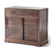 • Practical Storage: two small drawers, sliding doors, and shelves inside