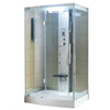 The Mesa 9090K corner steam shower features tinted blue glass and a nickel interior control panel. The 9090K is the perfect one person steam shower for any corner or free standing application. A favorite of both commercial and residential customers,  it features sliding glass doors, chrome trim, and a fold up seat for additional space. The sleek design and curved tinted blue glass is both stylish and appealing. Features include:
