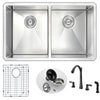 ANZZI presents the 32 in. VANGUARD SERIES hand crafted under mount kitchen sink. Representing the latest in modern home fixture designs and traditional European crafting technique this stunning display of artistry is hand shaped to perfection using RHINO ALLOY certified 16-Gauge 304 stainless steel. Only ANZZI hand crafted kitchen sinks utilize RHINO ALLOY certified materials for superior strength and quality. The cavernous 50/50 deep soaking dual basin will comfortably accommodate the largest dish loads including pots, pans and more. And every ANZZI sink features extra-large Echo-STOP sound dampening pads and a layer of protective composite coating to further quiet noise and prevent condensation. We have paired this sink with the ANZZI Soave Kitchen Sink Faucet. Each ANZZI faucet has been certified as Water Sense approved with solid brass construction and valve included. Well defined diversion lines ensure quick and total water drainage and the subtly curved corners allow of easier cleaning. ANZZI carries a proud tradition of crafting long lasting, quality home fixtures. With ANZZI perfection is our tradition.