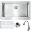 ELYSIAN Farmhouse Stainless Steel 32 in. 0-Hole Kitchen Sink and Faucet Set with Accent Faucet in Polished Chrome