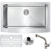ANZZI presents the 32 in. ELYSIAN SERIES hand crafted farmhouse kitchen sink. Representing the latest in modern home fixture designs and traditional European crafting technique this stunning display of artistry is hand shaped to perfection using RHINO ALLOY certified 16-Gauge 304 stainless steel. Only ANZZI hand crafted farmhouse kitchen sinks utilize RHINO ALLOY certified materials for superior strength and quality. The cavernous deep soaking basin will comfortably accommodate the largest dish loads including pots, pans and more. And every ANZZI sink features extra-large Echo-STOP sound dampening pads and a layer of protective composite coating to further quiet noise and prevent condensation. We have paired this sink with the ANZZI Soave Kitchen Sink Faucet. Each ANZZI faucet has been certified as Water Sense approved with solid brass construction and valve included. Well defined diversion lines ensure quick and total water drainage and the subtly curved corners allow of easier cleaning. ANZZI carries a proud tradition of crafting long lasting, quality home fixtures. With ANZZI perfection is our tradition.