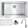ELYSIAN Farmhouse Stainless Steel 32 in. 0-Hole Kitchen Sink and Faucet Set with Singer Faucet in Brushed Nickel
