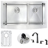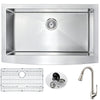 ANZZI presents the 32 in. ELYSIAN SERIES hand crafted farmhouse kitchen sink. Representing the latest in modern home fixture designs and traditional European crafting technique this stunning display of artistry is hand shaped to perfection using RHINO ALLOY certified 16-Gauge 304 stainless steel. Only ANZZI hand crafted farmhouse kitchen sinks utilize RHINO ALLOY certified materials for superior strength and quality. The cavernous deep soaking basin will comfortably accommodate the largest dish loads including pots, pans and more. And every ANZZI sink features extra-large Echo-STOP sound dampening pads and a layer of protective composite coating to further quiet noise and prevent condensation. We have paired this sink with the ANZZI Soave Kitchen Sink Faucet. Each ANZZI faucet has been certified as Water Sense approved with solid brass construction and valve included. Well defined diversion lines ensure quick and total water drainage and the subtly curved corners allow of easier cleaning. ANZZI carries a proud tradition of crafting long lasting, quality home fixtures. With ANZZI perfection is our tradition.