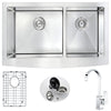 ELYSIAN Farmhouse Stainless Steel 36 in. Double Bowl Kitchen Sink and Faucet Set with Opus Faucet in Brushed Nickel