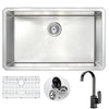 VANGUARD Undermount Stainless Steel 30 in. 0-Hole Kitchen Sink and Faucet Set with Soave Faucet in Polished Chrome