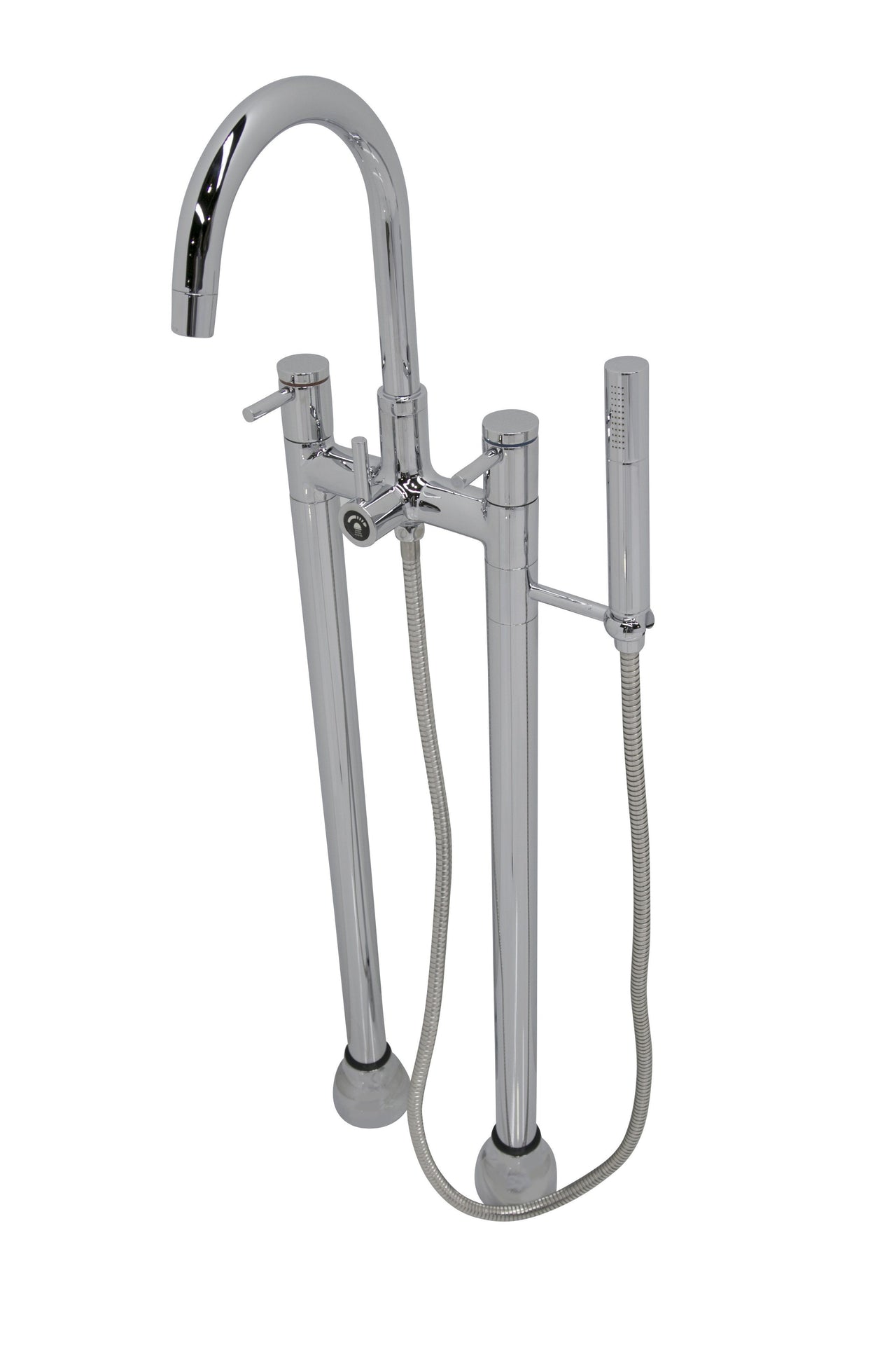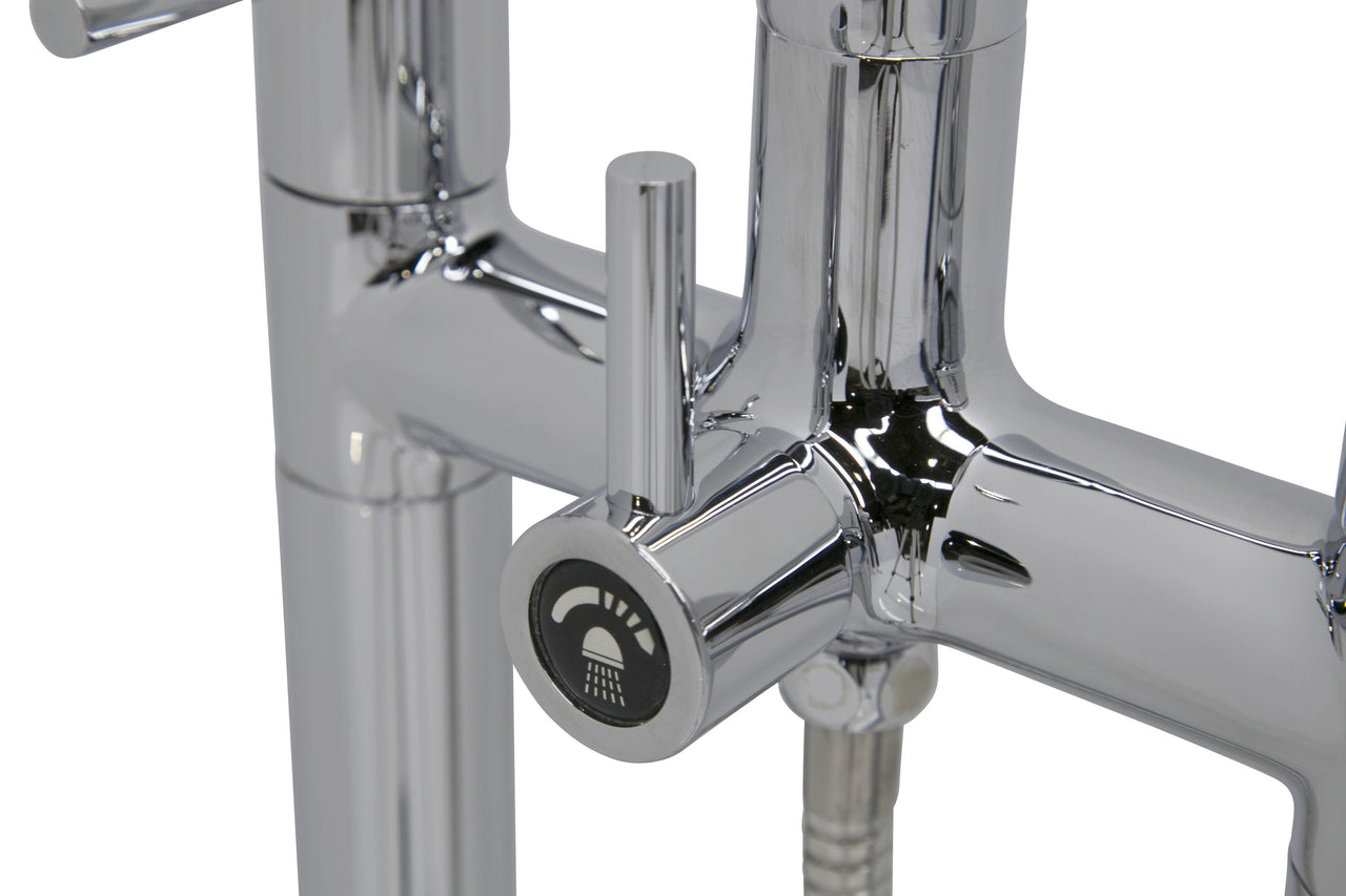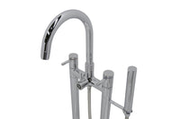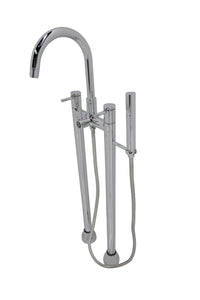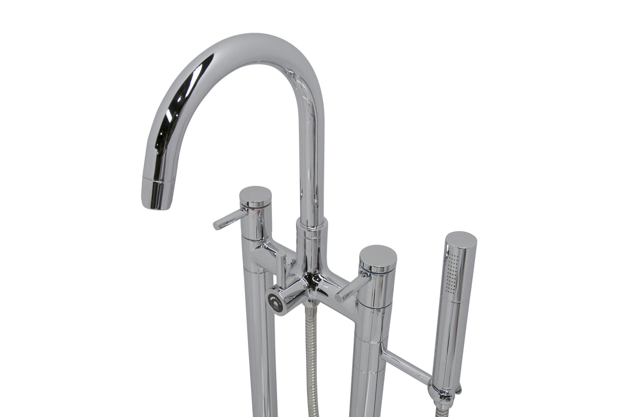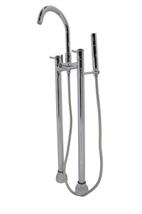 The ANZZI Sol Series 3-handle freestanding claw foot tub faucet with hand shower is just what you are looking for to complete you’re freestanding or claw foot tub. The pleasantly designed sleek high arched spout is flanked by two handle levers for hot and cold water adjustment, and a diverter to switch between the spout and handheld spray. This dual function tub faucet is finely crafted in stainless steel which is RHINO ALLOY certified for durability.