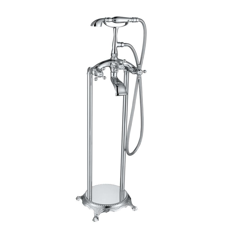 ANZZI has brought art to life in the form of an elegantly crafted full sized freestanding and claw foot tub floor mounted faucet. The ANZZI Tugela series features 3 handle control design, powerful tub filling spout and far reaching hand held sprayer. All this is suspended atop a floor mounted freestanding architecture in polished chrome which housing solid brass interior components. ANZZI freestanding faucets are crafted for looks and built for reliability.