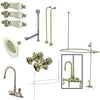 This clawfoot tub package includes faucet with high rise goose neck, hand shower and cradle, shower riser and shower head, curtain rod, chain plug drain and overflow, and supply lines all constructed of high quality brass to ensure reliability and durability. The premier finish resists tarnishing and corrosion. All mounting hardware is included and standard US plumbing connections are used.