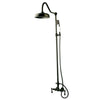 This shower combination includes a wall mount tub faucet with adjustable 3-3/8" spread, 62" shower riser, 17" shower arm, 8" shower head, personal hand shower with hose all constructed of high quality brass to ensure reliability and durability. The premier finish resists tarnishing and corrosion. All mounting hardware is included and standard US plumbing connections are used.