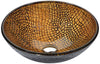 The ANZZI Nile Series sink is a traditionally crafted round vessel sink adorned in a Shifting Earth finish. Each ANZZI vessel sink if formed using RHINO ALLOY certified high tempered Deco-Glass material. The result is an elegantly shaped and captivating vessel centerpiece for any bathroom counter.