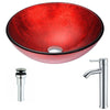 Crown Series Deco-Glass Vessel Sink in Lustrous Red with Harmony Faucet in Chrome