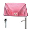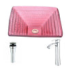 Ritmo Series Deco-Glass Vessel Sink in Lustrous Translucent Red with Fann Faucet in Chrome