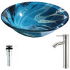 Symphony Series Deco-Glass Vessel Sink in Lustrous Dark Blue Finish with Crown Faucet in Chrome