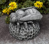 All bench legs and statuary should be raised up off the ground in winter so they will not freeze to the ground surface. Items that have areas that pool water should be wrapped with burlap or any absorbent material (old blanket/towel) and then wrapped with dark plastic, making sure that water does not accumulate and freeze.