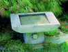 We suggest that birdbath/fountain tops not be left outside in the winter. Once the top fills with water/snow and freezes, the top may crack. All birdbath/fountain bases, bench legs and statuary should be raised up off the ground in winter so they will not freeze to the ground surface. Ideally, a fountain should be stored indoors in the winter away from the elements. However, if a fountain bowl must be left outside, remove all pumps, rubber stoppers, drain pipes, finials and small components, and cover the top with burlap or any absorbent material (old blanket/towel) and then wrapped with dark plastic, making sure that water does not accumulate in the basin and freeze. Fountain pumps, finials, and other small components should be stored indoors. Check the fountain periodically to insure that the cover is secure and water is not accumulating in any fountain component.