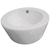 This countertop lavatory sink features a sufficient-sized round basin 15-3/4" in diameter with a center hole drilling on an integrated faucet deck. An overflow hole is also included on the front of the basin. The construction of the vitreous china layering provides extra reinforcement and resistance from stains.