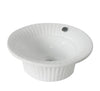 The countertop vessel sink is made from fine vitreous china for stain resistance and long-lasting use. The basin is 16-1/2" in diameter (16-1/2" in whole) constructed with sleek curves, a soft rounded rim and a gloss-like finish that is easy to clean. An overflow hole is included on the inner basin.