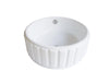 The Laurel vessel sink features a deep cylindrical anatomy with curved indentations designed on the exterior as well as the interior basin. The hollow thickness of the sink is designed for vessel or wall-mount faucet application. The shape of the Laurel includes a chrome-plated overflow hole on the top front of the basin. Made from the finest vitreous china material, the sink is made to prevent from scratching or chipping.
