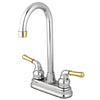 With a pair of graceful lever handles, the Kingston Brass Magellan FB625 4" Centerset Faucet adds a traditional elegance to any home bathroom. The faucet utilizes hybrid waterways to be in full compliance with low-lead regulations. The faucet is constructed to be both durable and reliable thanks to its use of washerless cartridges. The faucet installs easily and includes a retail pop-up drain. Available in: Polished Chrome, Oil Rubbed Bronze, or Satin Nickel.