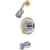 With a transitional design, the Water Saving Magellan Tub and Shower Faucet is a great choice for any home bathroom. The shower system is constructed from solid brass for durability and reliability. It also utilizes a pressure balanced valve to prevent any unexpected spikes or drops in temperature. Water is controlled through a single lever handle and the showerhead flows at the EPA's WaterSense required 1.5 gallons per minute.