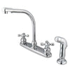 Kingston Brass GKB711AX Water Saving Victorian High Arch Kitchen Faucet with Cross Handles and Sprayer, Chrome