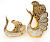 Twice The Value! An Elegant Set Of 2 Park Avenue Vases. The Pair Is Graduated In Height. Each Vase Is Hand Cast In Porcelain With Gold Plating. Each Vase Is Enhanced By A Large Band Of Micro Mosaic Crystal That Is Applied By Hand, Creating Sparkle And Contrast. The Set Is A Stand-Alone Decorative Object Of Art Or Suitable For A Sculpture Application. However, The Modern Designed Needle Nose Forms Can Be Used As Functional Vases As Well. A Perfect Selection For A Quality Application Looking For A Slight Pop Of Sparkle. No Assembly Required
