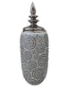 A 18" Tall Vase From Our Sophie Silver Collection Featuring A Cast Porcelain Vase With Hand Finishing. Featuring Raised Silver S Scrolls And Leaf Details Against A Softly Antiqued White Base Tone.