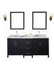 A modern bathroom remodel is incomplete without a stylish bathroom vanity set. The Hollandale series from Ariel Bath features solid wood cabinets with carrara white marble countertops. The dovetail drawers are soft-closing and the satin nickel finish hardware rounds out this beautiful design.