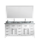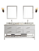 The Roosevelt bathroom vanity series from Ariel Bath includes everything needed and more in a bathroom upgrade. The solid wood cabinets are topped with a light granite countertop and the ceramic vessel sinks include room for single hole, single lever faucets. The cabinets are connected with a makeup table and include two uncovered areas for additional bathroom storage.