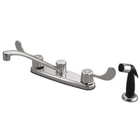 Upgrade your home kitchen faucet with the Kingston Brass Water Saving Magellan Centerset Kitchen Faucet with Side Sprayer. This kitchen faucet features solid brass construction for outstanding durability and reliability. The spout on the faucet reaches out over 7 inches with a spout height of 4.5 inches giving the user plenty of space between the spout and sink bottom. The faucet also features a low flow 1.5 gallons per minute to meet the EPA's WaterSense criteria. This kitchen faucet installs on a 8 inch centerset installation with standard US plumbing connections.