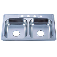 The self-rimming kitchen sink features a special mirror-reflected surface. The sink consists of two square-shaped basins and four drilled holes built in superior quality stainless steel for durability and a long-lasting experience.