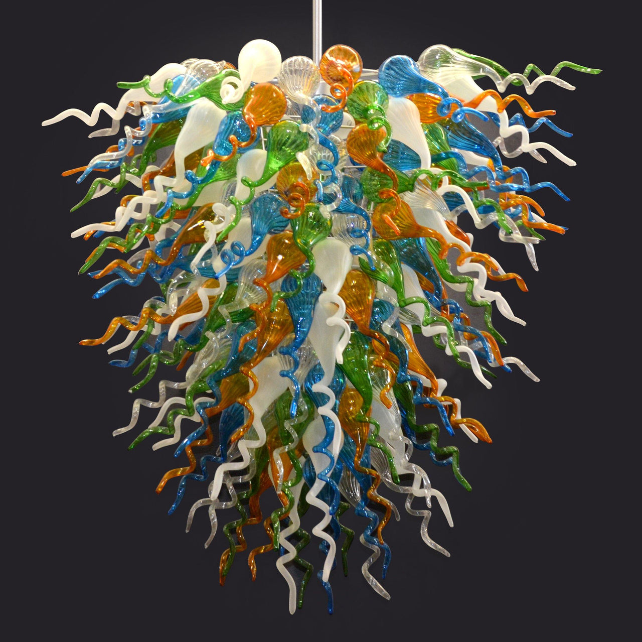 Each Of The Glass Bulbs Are Perfectly Hand Blown Art Glass With A Curly Cue Tip To Create This Beautiful Masterpiece. We Commissioned A World Class Glass Artist, Skilled In The Art Of Hand Blown Glass, To Provide The Public The Best The World Has To Offer At A Price That They Can Afford. This Chandelier Requires 4 - 60W - E26 Bulbs Material: Steel/Glass Crystal :No Lead Content:- Crystal Origin:- Weight Lb:19.8 Bulbs:4 Bulb Type: Watt :60 Switch:E26 Product Ul :Yes Wiring Ul :Yes Socket Ul :Yes Assembly :As Per Instruction